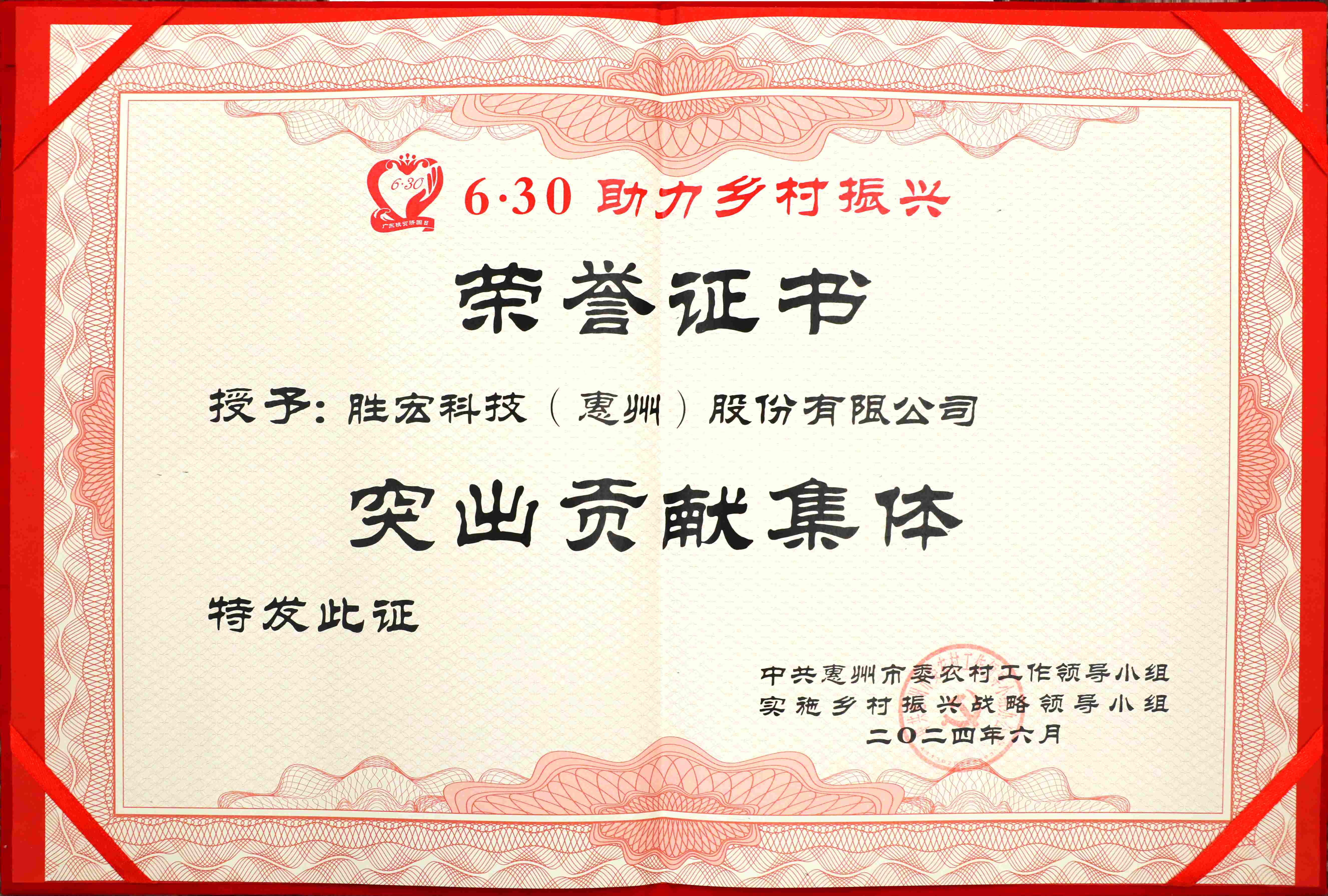 我司财务中心总监朱国强代表公司出席了此次活动,并上台领取了“惠州市2023年度‘6·30’助力乡村振兴突出贡献集体”的荣誉牌匾与奖状。这是我司连续第二年获此殊荣,充分体现了多宝电竞科技在履行企业社会责任方面的积极态度和坚定决心。这份荣誉的背后,是多宝电竞科技以实际行动助力乡村振兴的生动写照。